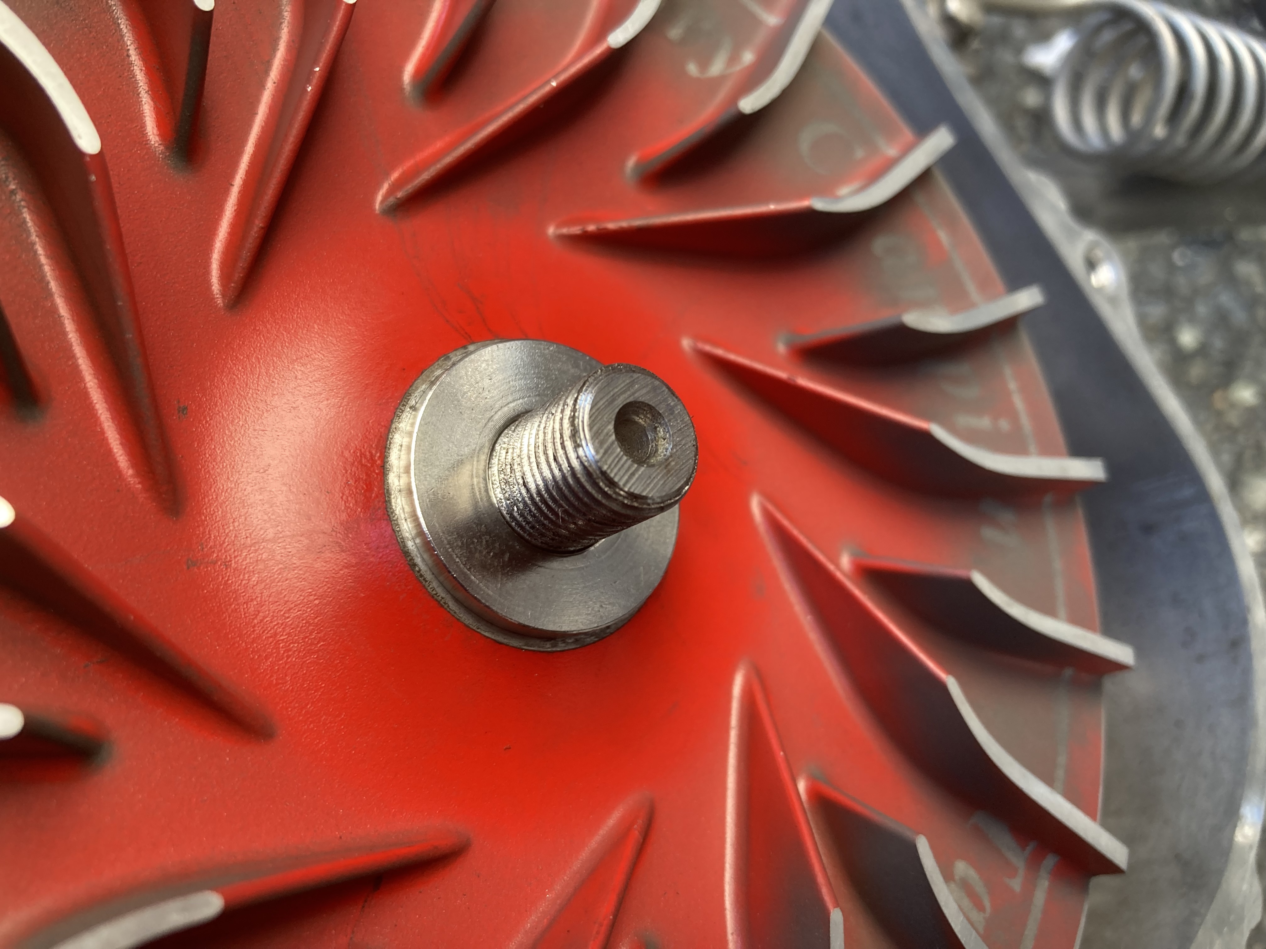 フェイスのついている純正ワッシャが重く穴も大きいです。